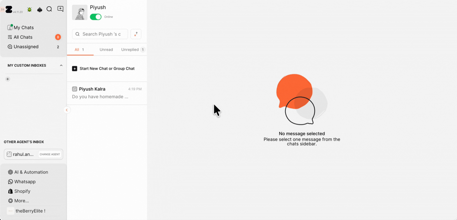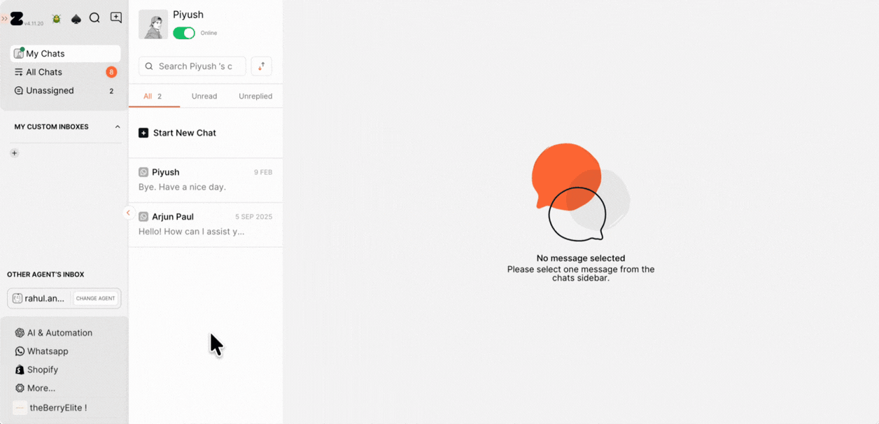 3. You have the option to get an answer to the customer’s question by clicking on the AI Suggested icon. The response will be generated based on how you’ve trained the bot, and you can review and send it instantly.