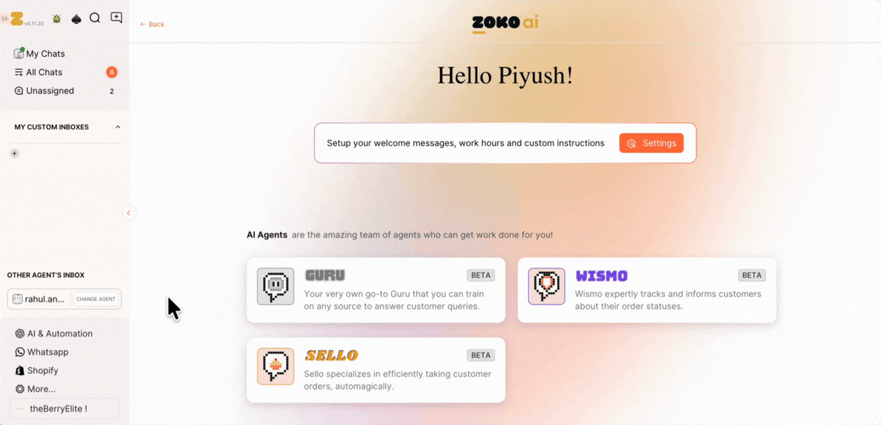 1. Go to AI & Automation and click on Zoko AI.