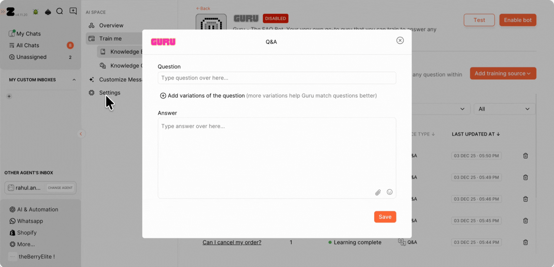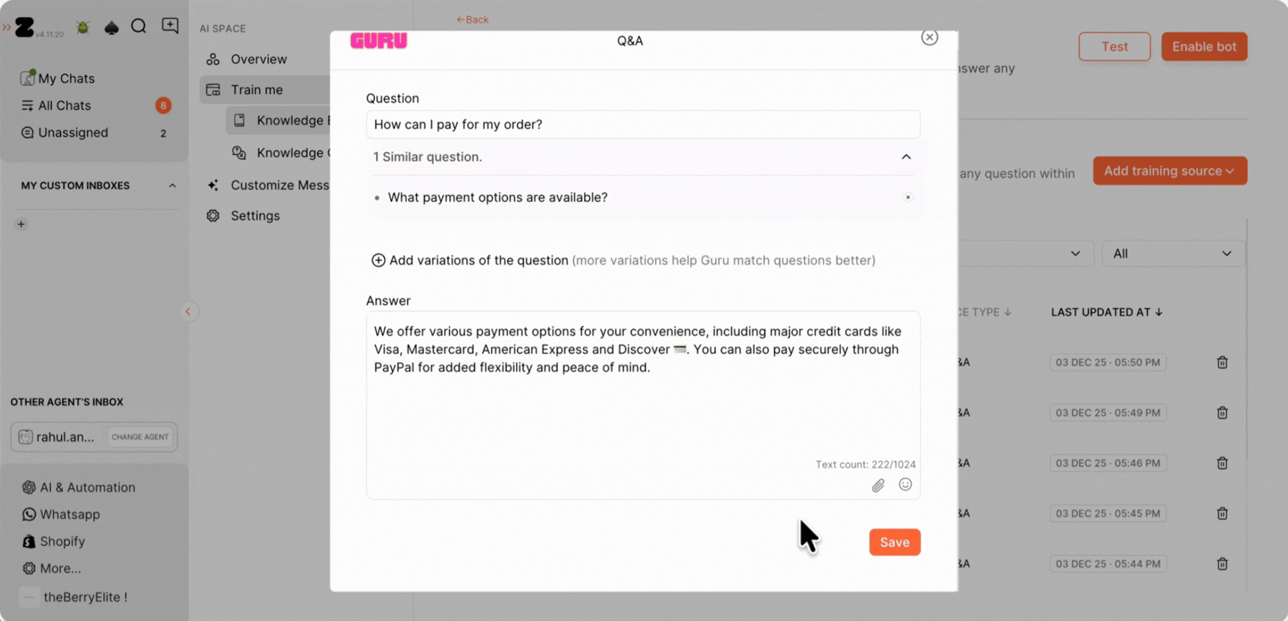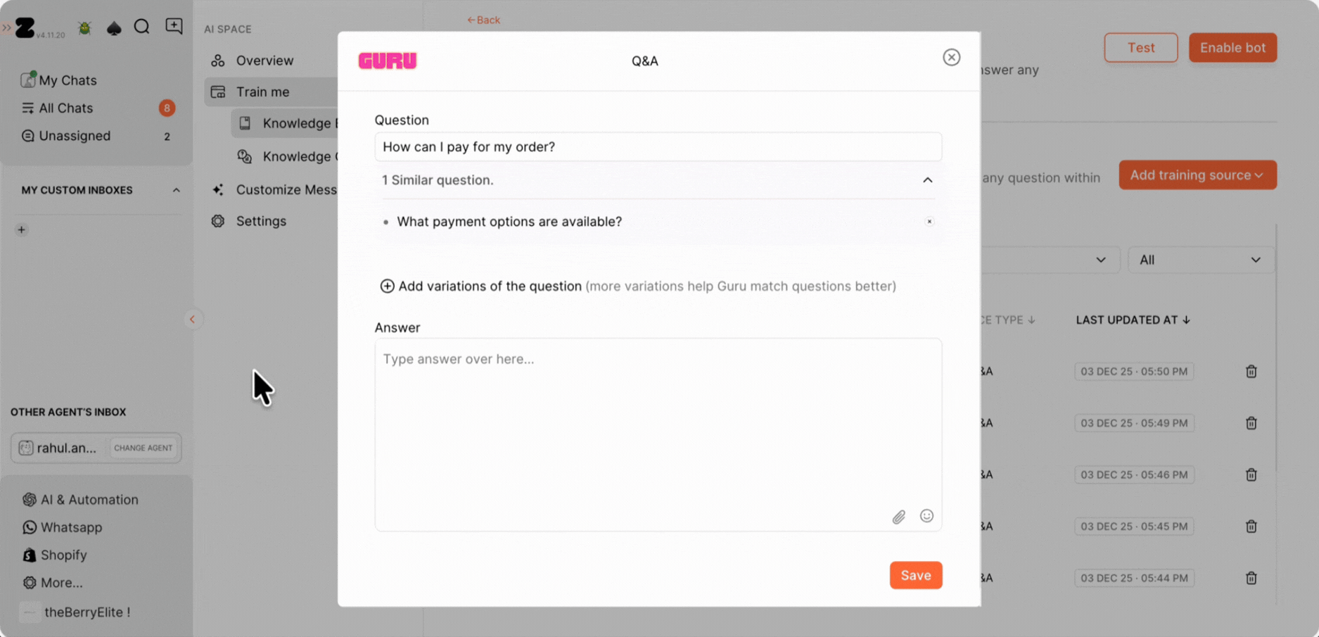 Step 5: Train Guru & Respond Directly from Chats