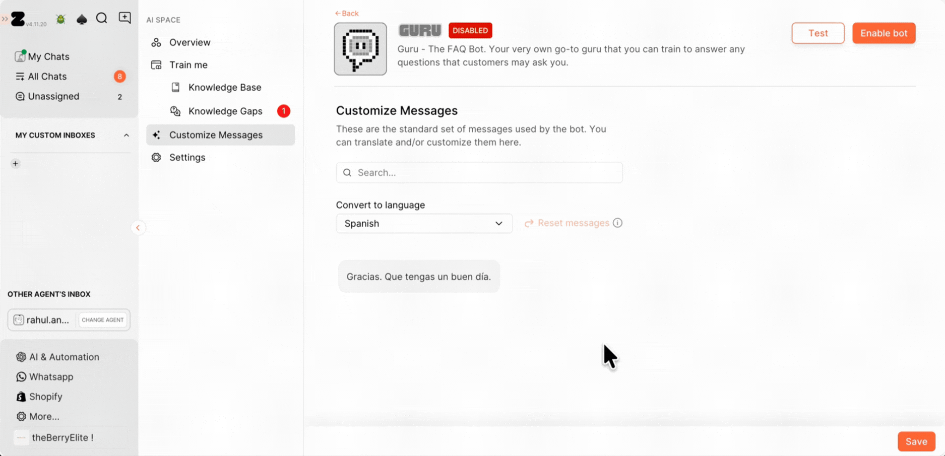 That's it! You have successfully set up. Now, watch as the bot effortlessly guides your customers through the entire process. Sit back and let Guru work its magic!