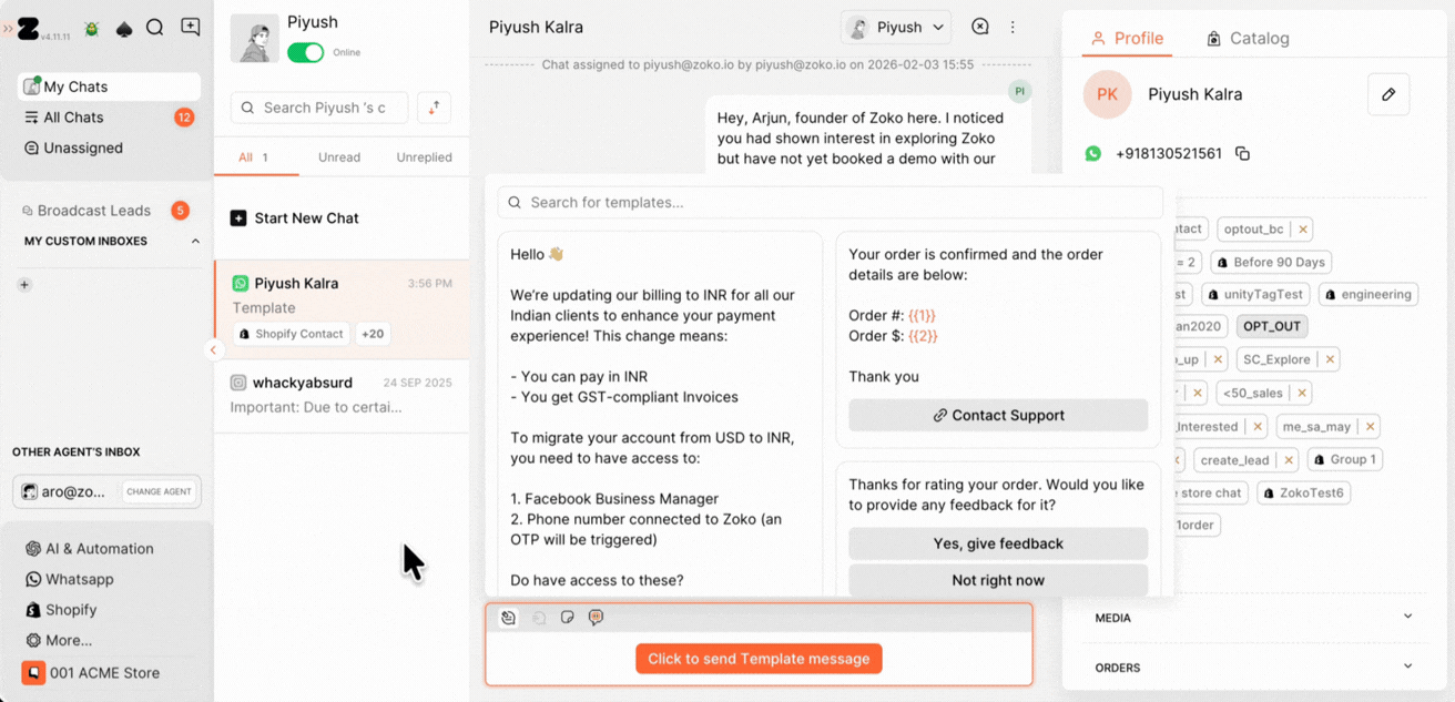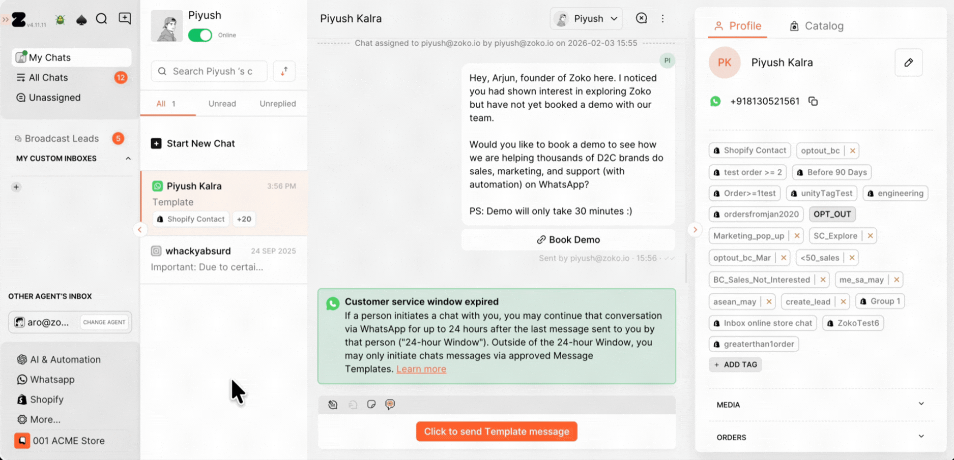 Here is how you can send the standard template message to your customer if the 24-hour window is closed in chat