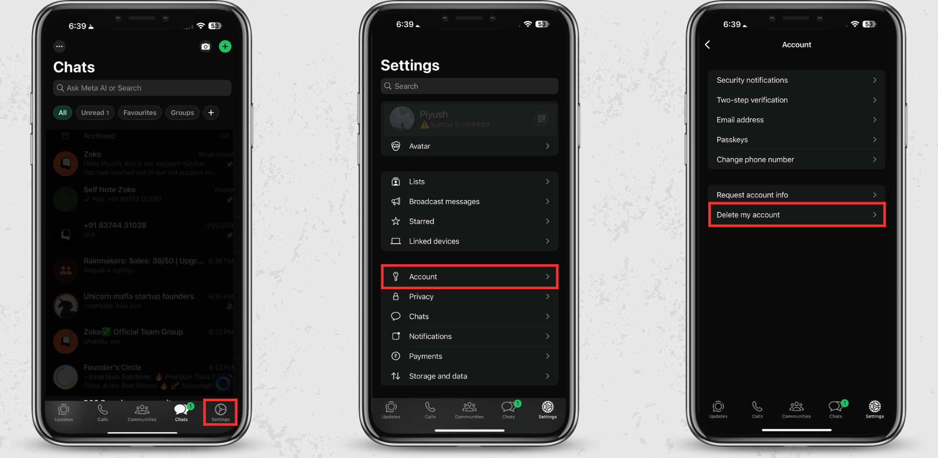 If your number is currently active on WhatsApp or WhatsApp Business and you want to move it to WhatsApp API, you must delete the existing account first. Deleting the account frees up the number, allowing it to be registered on WhatsApp API.
