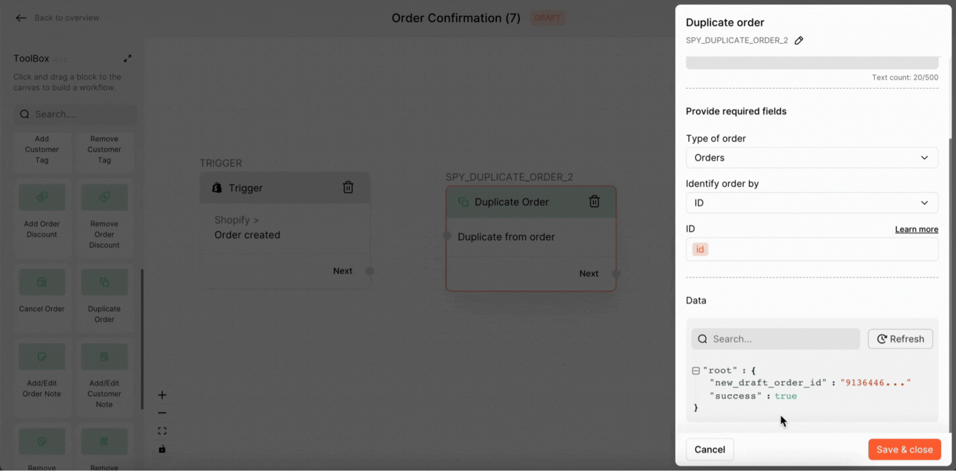 Using a duplicate order flow card in a workflow can help automate this process by identifying and canceling duplicate orders automatically. This can save time and ensure that orders are accurately processed, resulting in a smoother and more efficient workflow.