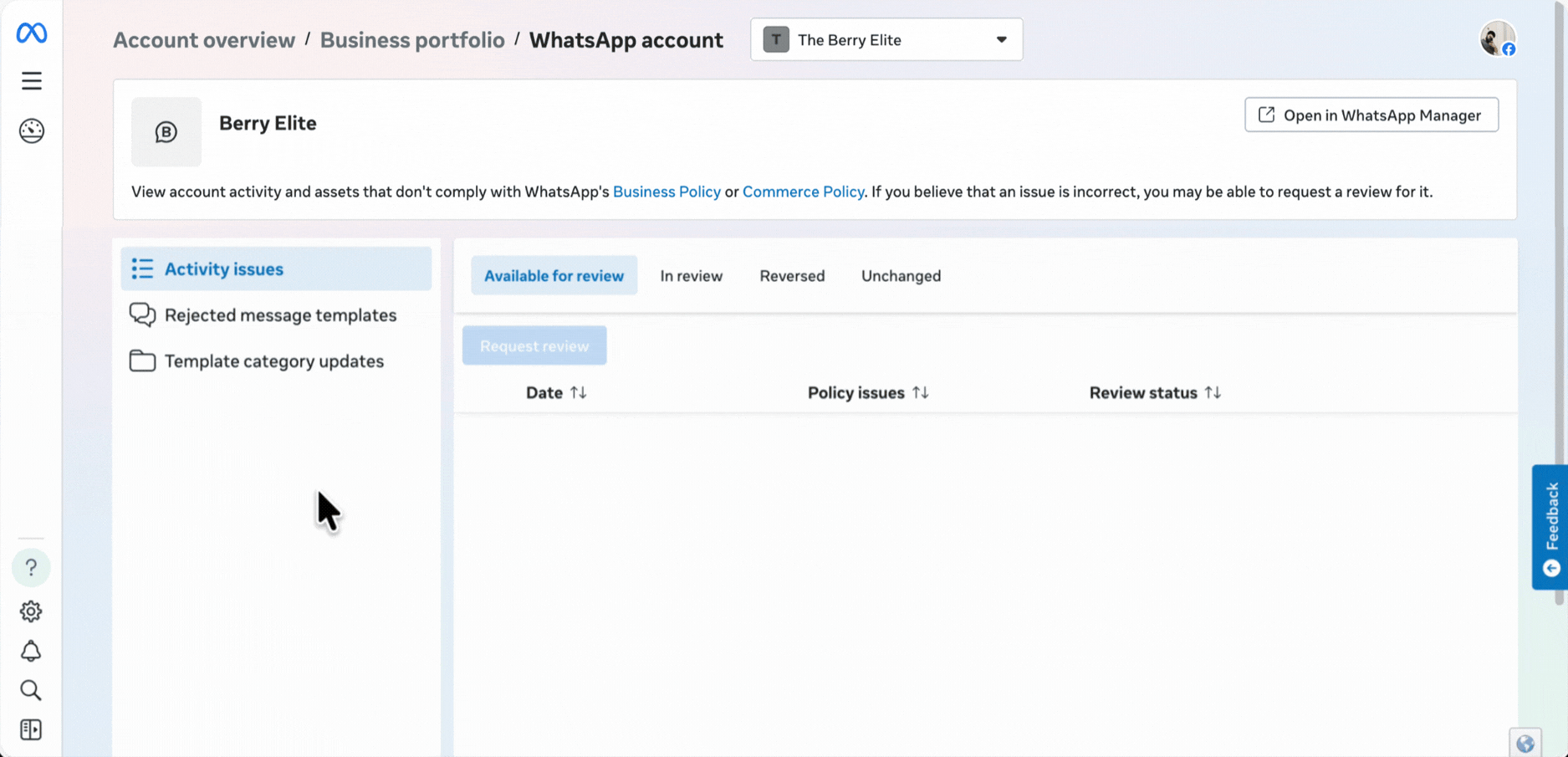 Learn how to raise a request for WhatsApp template recategorisation in Meta Business Manager.